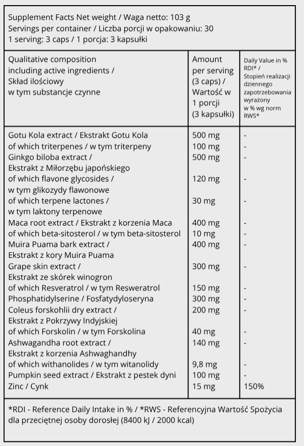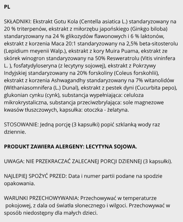 - Nowa formuła: Gotu Kola + Ginkgo Biloba
