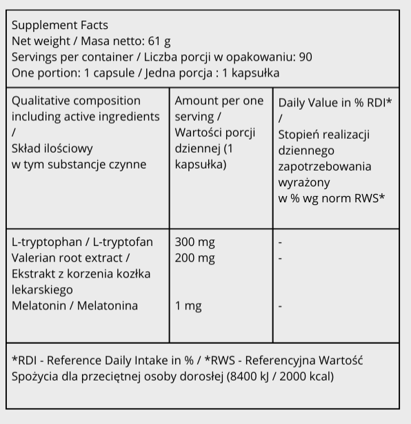 Zawiera melatoninę, kwas D-Asparaginowy(DAA) i kwas Gamma-Aminomasłowy(GABA), ekstrakty roślinne kozłka lekarskiego i melisy, aminokwasy i minerały Zawarty cynk pomaga w utrzymaniu prawidlowego poziomu tesrosteronu we krwi Zawiera magnez, który przyczynia się do zmniejszenia uczucia zmęczenia i znużenia oraz wit. B6, która przyczynia się do regulacji...
